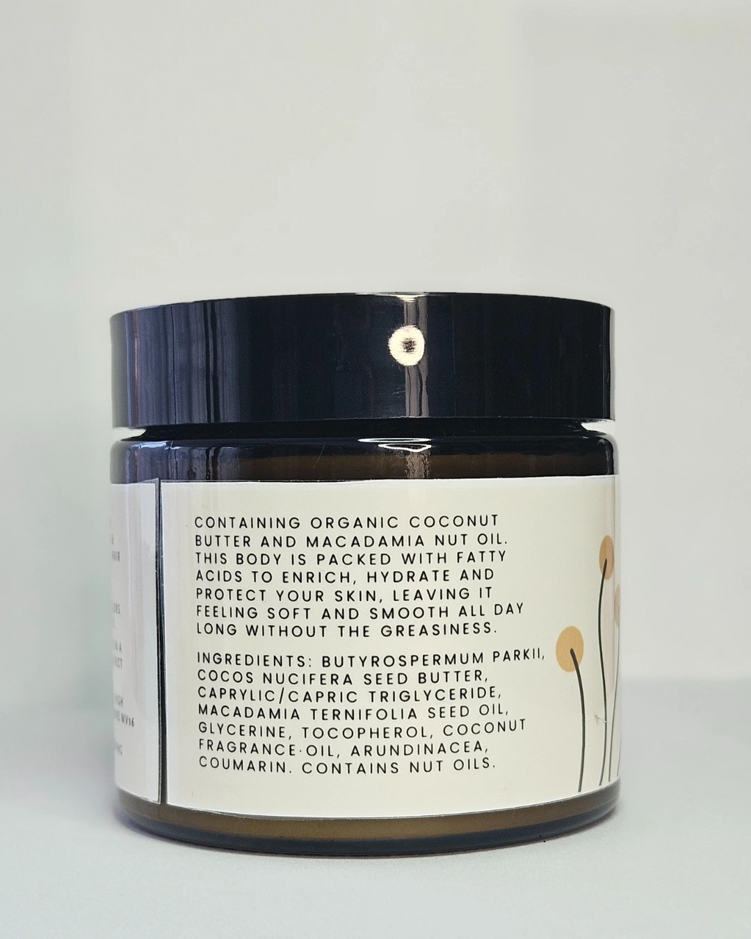 Shea Butter, Coconut Butter, Macadamia Oil, Fractionated Coconut Oil, Vegetable Glycerin